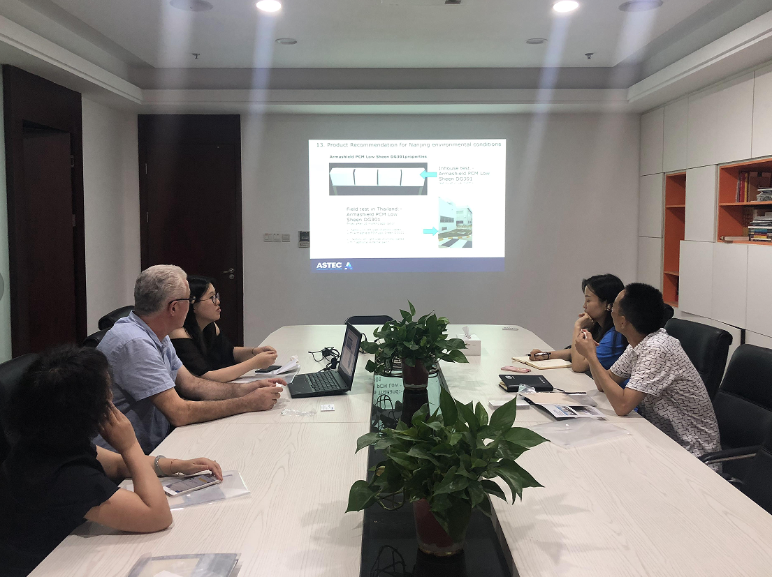 2019年7月17日-7月20日,澳洲ASTEC涂料公司董事Peter galanis 来我司进行为期4天的考察。在会议上针对进行了座谈交流,考察了解公司的发展,详细的查看我司的人员管理,施工团队,安全生产,产品质量及公司业务。此外,查看了我司已完工程和在建工程,我司人员做了详细的方案分析;对我司的分析汇报给予了充分的肯定,为推动工作的展开鉴定了良好的基础。